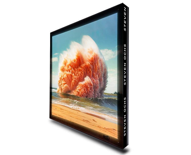 Rising Gods series is an awe-inspiring series that encapsulates the abstract emergence of our greater selves. Its dramatic portrayal is a symphony of fiery hues and serene blues, embodying the dual nature of creation and calm. This piece invites onlookers into a realm where the divine intersects with the natural world, offering a glimpse into a spectacle where gods ascend from the depths in a display of power and mystique. Perfect for those who seek a touch of the sublime in their space, this series is a conversation starter, a statement of depth and imagination. This series of Stereo Layered works and a significant step in Steven's process.